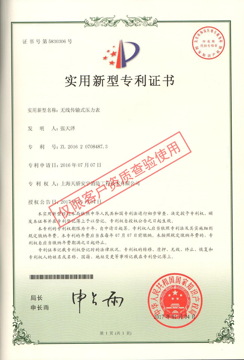 專利證書(shū)