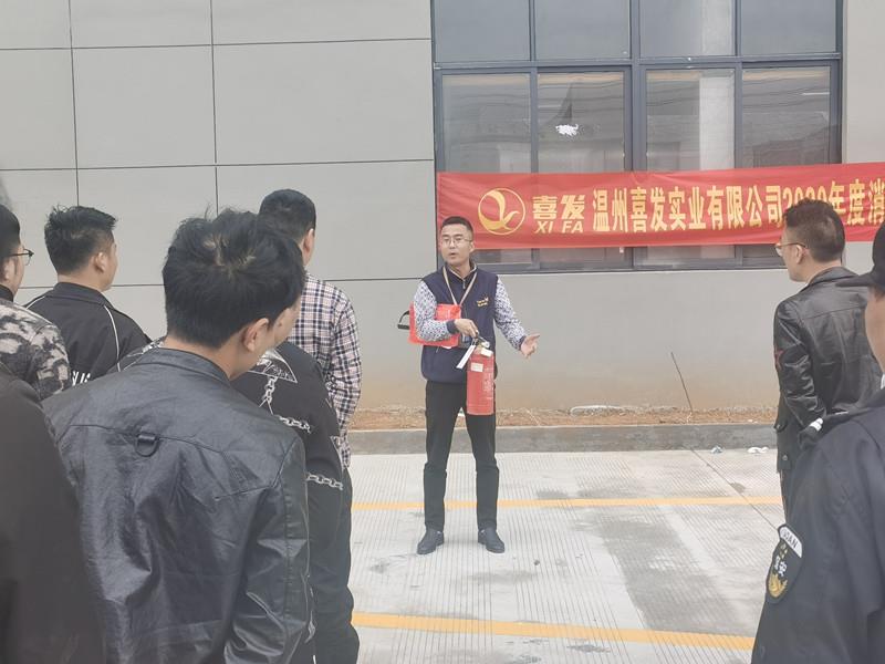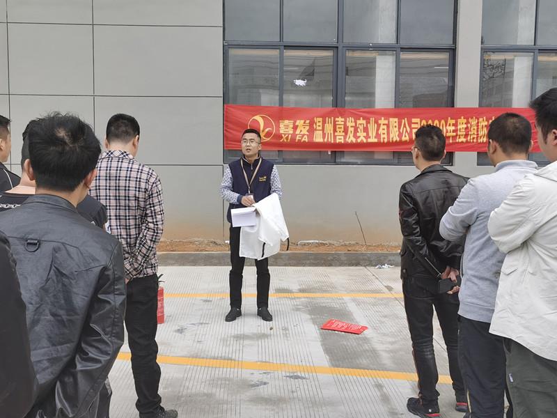 為了進一步加強公司安全工作,增強公司員工消防安全意識,提高員工對火災的應急撲救處置能力,本著堅持“安全第一,預防為主”的方針和“以人為本”的思想,4月27日下午,溫州喜發(fā)實業(yè)有限公司在新廠空曠地上,我司組織員工進行消防理論講解和消防器材使用演練。